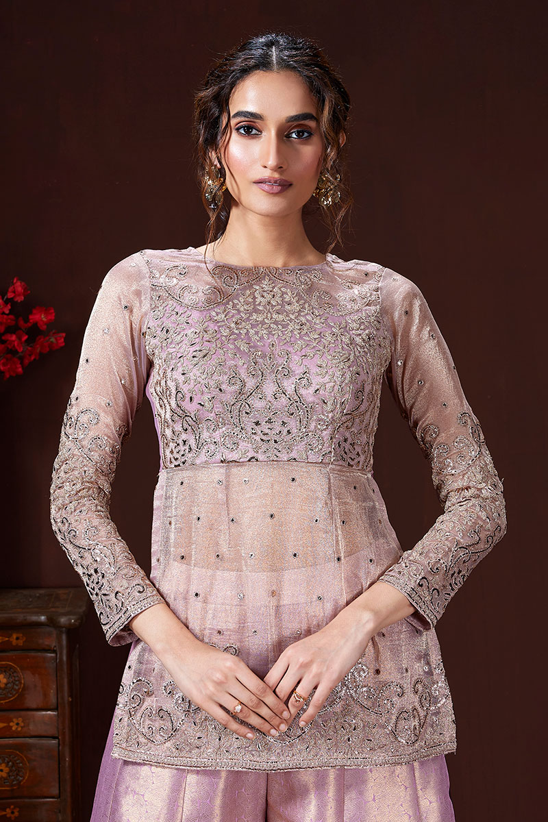 Update your clothing style as per the latest trend with this beautiful Light Pink designer palazzo suit. Collection of this suit crafted from Silk fabric which features Embroidery Work. Enhance your ensemble with ethnic jewelry and a pair of heels for a sophisticated touch. The suit comes with a matching palazzo bottom made from Silk fabric. Please be aware that slight color variations may occur due to digital photography, and the accessories shown are only for illustration.
