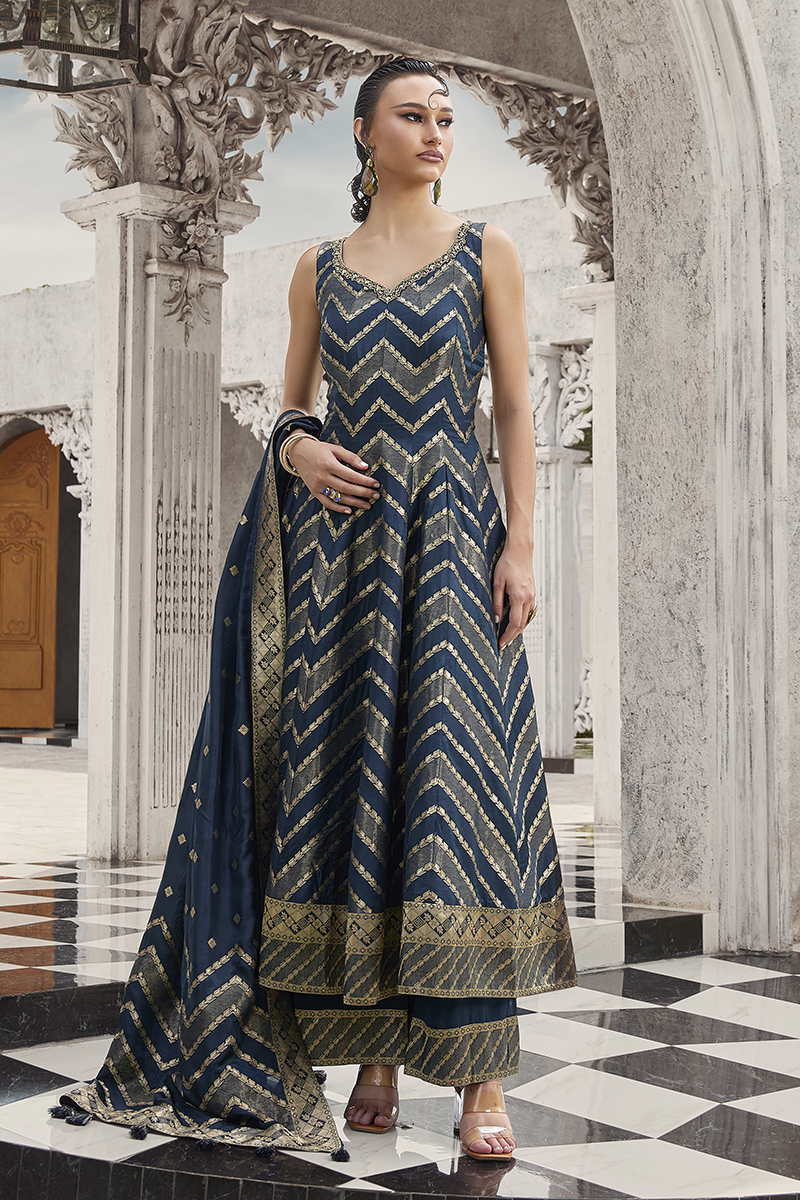 Striking Navy Blue Designer Sharara Suit for Engagement and Reception