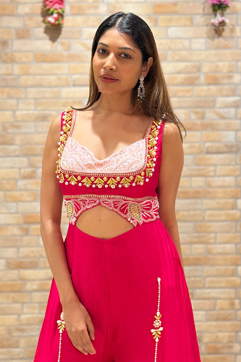 Charismatic Pink Designer Palazzo Suit for Engagement and Reception