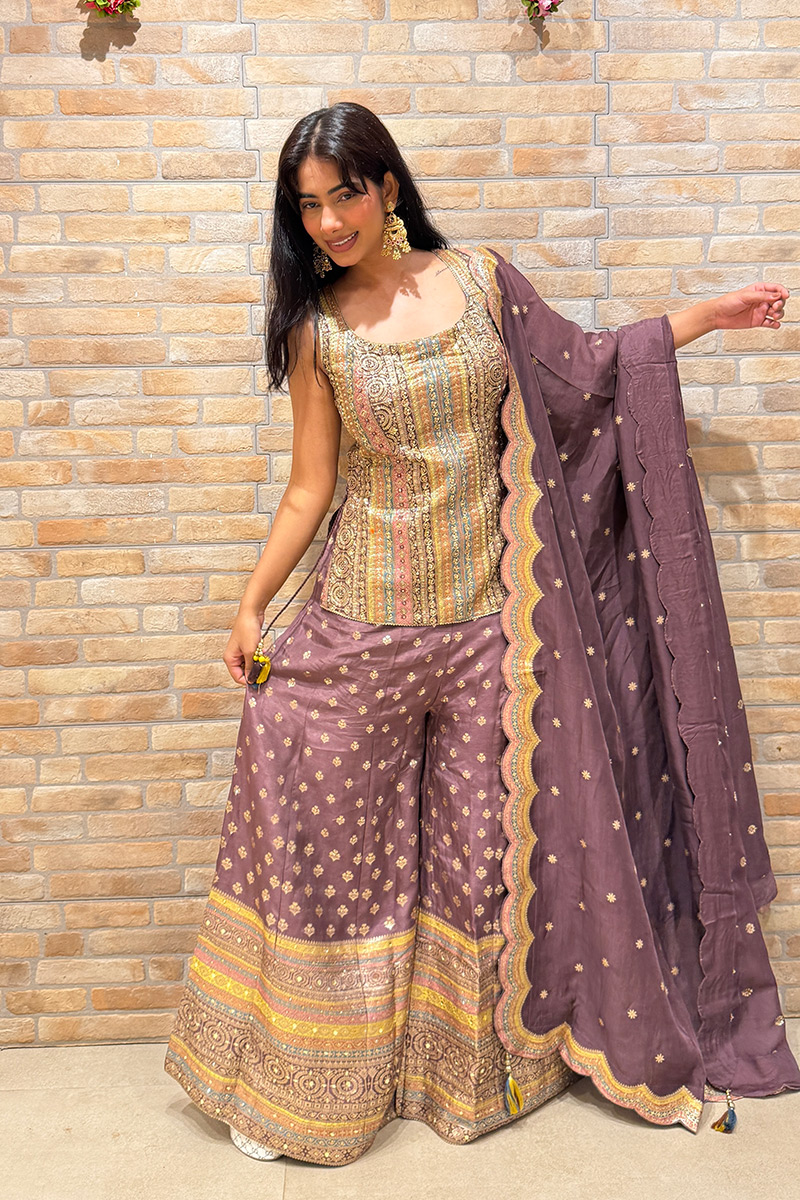 Ethnic Wine Designer Palazzo Suit for Engagement and Reception