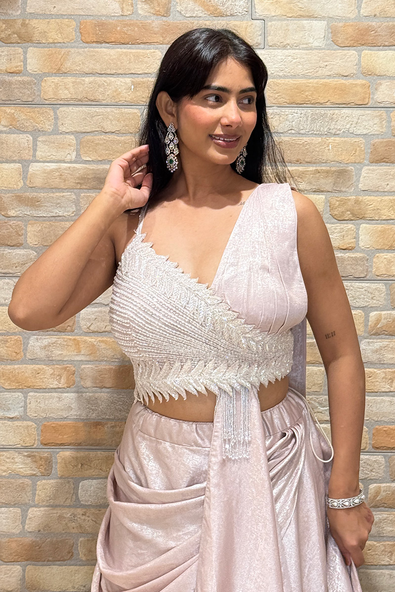 Mesmerizing Peach Designer Indo-Western Lehenga Choli for Engagement, Sangeet, and Parties