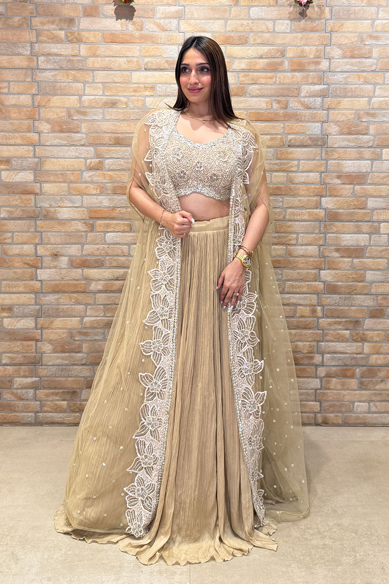 Splendid Cream Designer Indo-Western Lehenga Choli for Engagement, Reception, and Sangeet