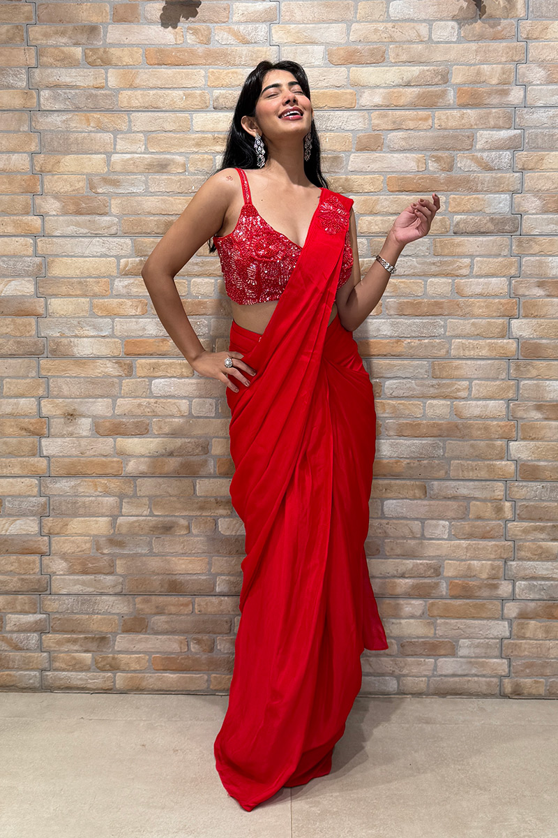 Look for a way to diversify your attire for the day? Then go ahead and wear this alluring Red colored designer saree. Order this saree which is made of Satin fabric and is beautifully crafted with Embroidery work. Pair this saree with ethnic jewellery and a pair of heels to elevate your style. This saree comes Matching Blouse. Note slight color variation may be possible due to the digital photography. Accessories shown in the image is for photography purpose.